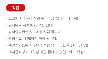 대신 로그인 시 1일 1회 1학점 지급드리고 있습니다.